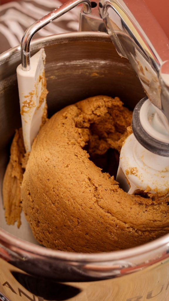 • Rör rumsvarmt smör, socker och sirap smidigt med vinge. Rör ner kryddorna och bikarbonaten, sedan vattnet och till sist det mesta av mjölet.